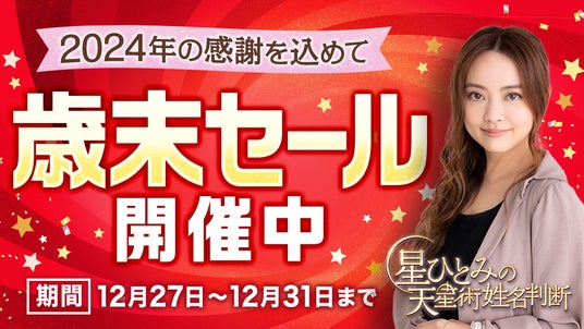 株式会社CAM(本社:東京都渋谷区、代表取締役社長:須田瞬海、以下CAM)は、運営する「星ひとみの天星術姓名判断( https://hoshi-hitomi.marouge.jp/ )」において、期間限定の歳末セールを開催いたします。