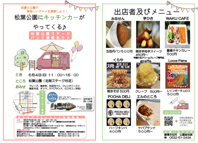 ◆歩いて、見て、食べて。まちなかを満喫しよう!松葉公園にキッチンカーがやってくる♪