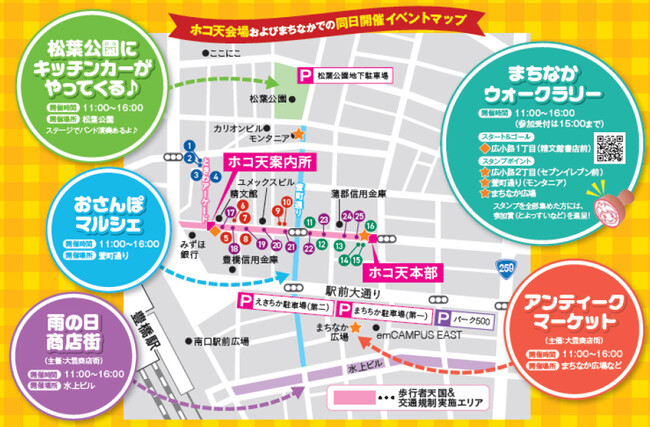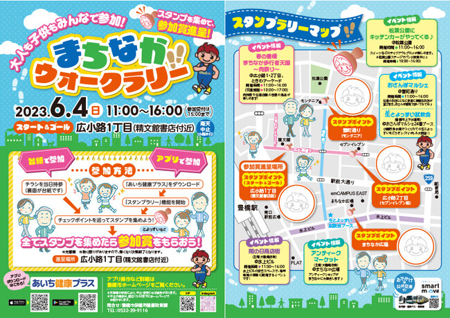 当日は、まちなかのイベントを巡ってもらおうと「まちなかウォークラリー」も実施します。広小路1丁目をスタート、ゴールにして、4カ所にスタンプポイントを設けます。スタンプをすべて集めると参加賞がもらえます。