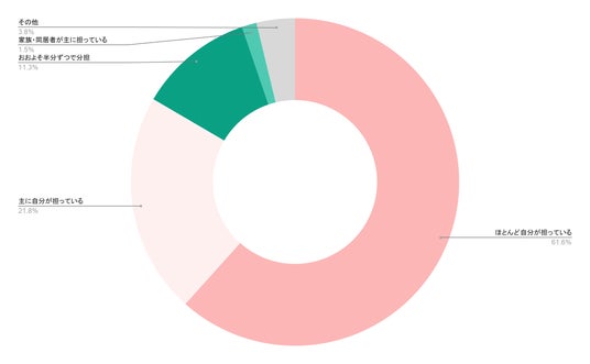 離乳食に関する家事は、「ほとんど自分が担っている(61.6%)」「主に自分が担っている(21.8%)」と回答した人を合わせると、83.4%にのぼりました。育児全体の分担は進んでいるように見えても、食事まわりの負担は依然として一人に集まりやすい現状がうかがえます。