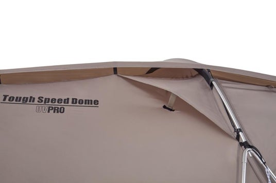 「タフスピードドーム」は、センターポールに自立するAフレームを採用し、最初に自立させた状態で設営が出来るので、素早い簡単設営が可能になりました。