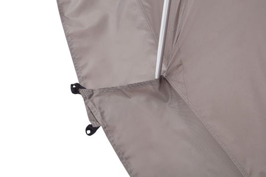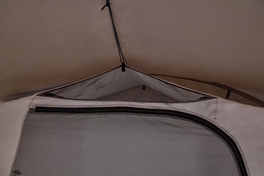 巻き上げたキャノピーをさらにバックルで止めることができる「ハイビューシステム」を採用。テント内からの景色が大きく広がるだけでなく、天井の高さとリビングスペースも確保できます。