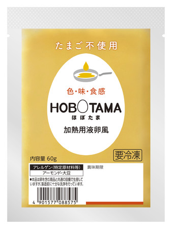 新商品は「HOBOTAMA 加熱用液卵風」と「HOBOTAMA スクランブルエッグ風」の2品(冷凍)で、どちらも卵1個分に相当する60gの内容量としました。