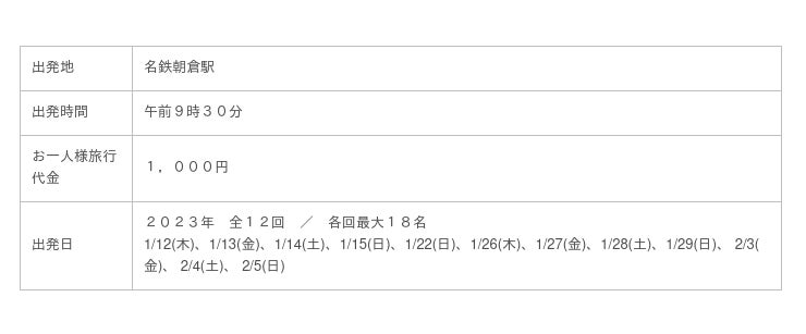 令和4年12月14日(水)から、名鉄観光サービス(株)予約サイトで販売開始