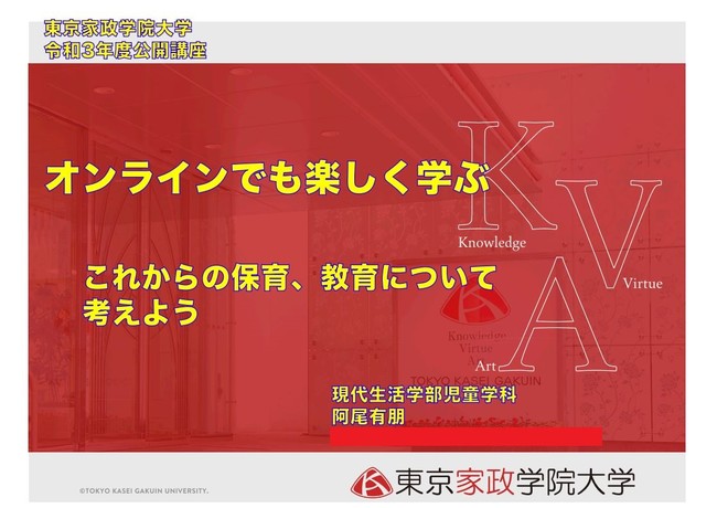 8月7日・17日にオンラインで実施された東京家政学院大学 児童学科 阿尾有朋 准教授の公開講座「オンラインでも楽しく学ぶ ―これからの保育・教育について考えよう―」が開かれました。