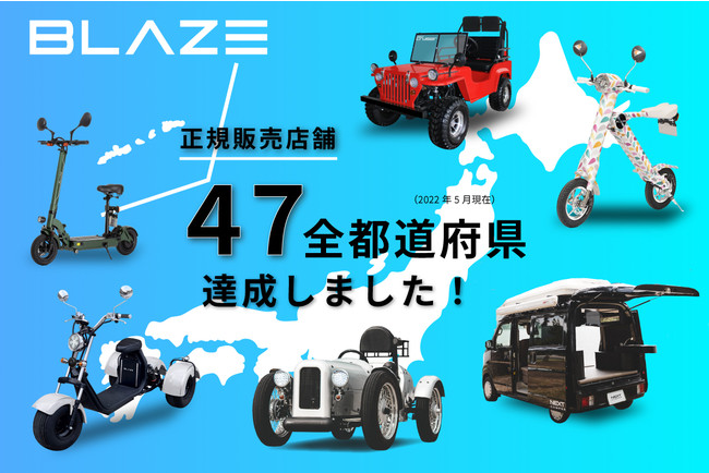 株式会社ブレイズ(愛知県名古屋市、代表取締役:市川秀幸、以下ブレイズ)は、正規販売店として47全都道府県での取り扱いを達成しましたことをお知らせします。