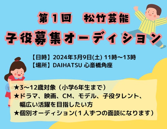 この度、「第1回 松竹芸能 子役募集オーディション」を