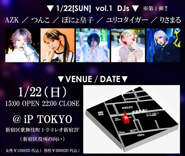 本イベント 『新宿は俺の庭 vol.1』 は、「CLUB MUSIC、J-POPからANIMESONG、VOCALOID、VTuberまで楽しめる、新宿にありそうでなかった!?サブカルミュージックパーティー」をコンセプトとしたDJイベントである。