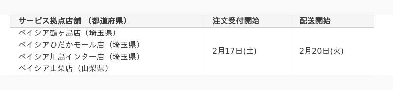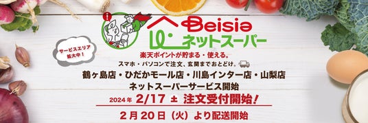 株式会社ベイシア(本社:群馬県前橋市、代表取締役社長:相木孝仁)は、楽天グループ株式会社(以下「楽天」)が提供するネットスーパーのプラットフォーム「楽天全国スーパー」内に出店する「ベイシアネットスーパー」において、2024年2月20日(火)よりベイシア 鶴ヶ島店・ひだかモール店・川島インター店・山梨店からの配送を開始いたします。