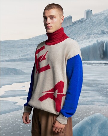 今季のサステナブルコレクションは、北極圏を旅することで自然が与えるあらゆるインスピレーションを読み取り、それを反映させたコレクションです。スノーホワイト、ベージュ、ディープブルーといったニュートラルな色調を明るく彩るカラーパレットが特徴的で、素材は、立体感のあるリサイクルナイロンのクレープ、ボリュームのあるニット、オーガニックコットン、超ソフトのベルベットとツイル、ウォッシュドフリース、アメリカンジャージーなど、多岐にわたります。この廃棄物を極力出さない取り組みは、アイテムに使われている、生産資材の端切れから作られたパッチワークにも象徴されています。