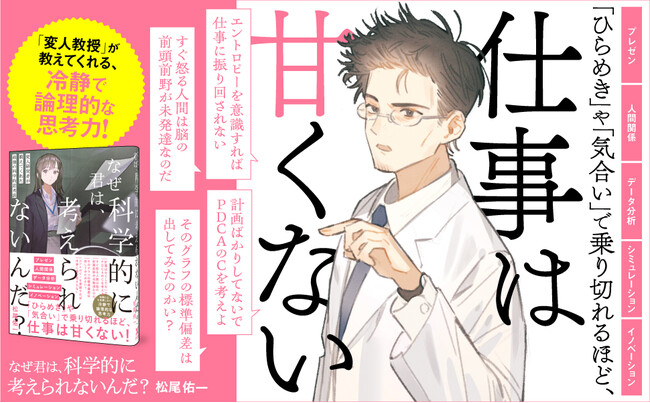 ビジネス書籍や実用書を中心に扱う出版社である株式会社クロスメディア・パブリッシング(東京都・渋谷区、代表取締役・小早川幸一郎)は、2023年3月2日(木)に新刊『なぜ君は、科学的に考えられないんだ?』(松尾佑一著)を出版しました。国立大学の准教授でありながら、文学賞受賞経験もある現役の小説家だからこそ書けた、「ビジネスに必要な科学的思考を小説スタイルで伝えるビジネス書」です。冷静で論理的な「判断」を求められるビジネスパーソンに向けて、データや数字と正しく向き合い、活用するためのノウハウをお伝えします。
