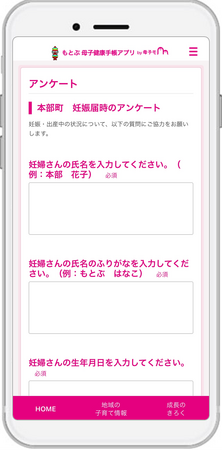 ~母子手帳交付時の来庁予約やアンケート提出などがアプリから可能に~