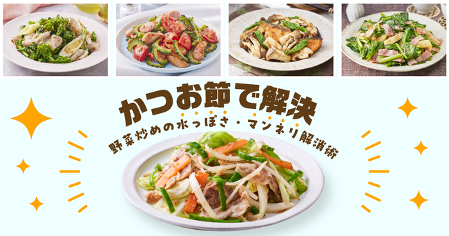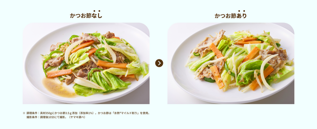 今回の研究結果より、かつお節を活用することで、そのお悩みを軽減できる可能性を見出せたのではないかと思います。かつお節を使った野菜炒めで、日々の食事に手軽でおいしい野菜料理を取り入れてみてください。