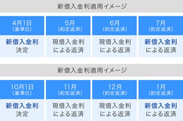 新借入金利は、基準日が4月1日の場合は6月の約定返済日の翌日から、基準日が10月1日の場合は12 月の約定返済日の翌日から適用します。