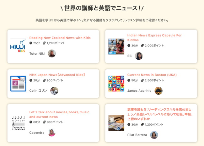 1.特集ページ(https://cafetalk.com/campaign/2021/season/news-for-kids/?lang=ja)でレッスンを選ぶ
