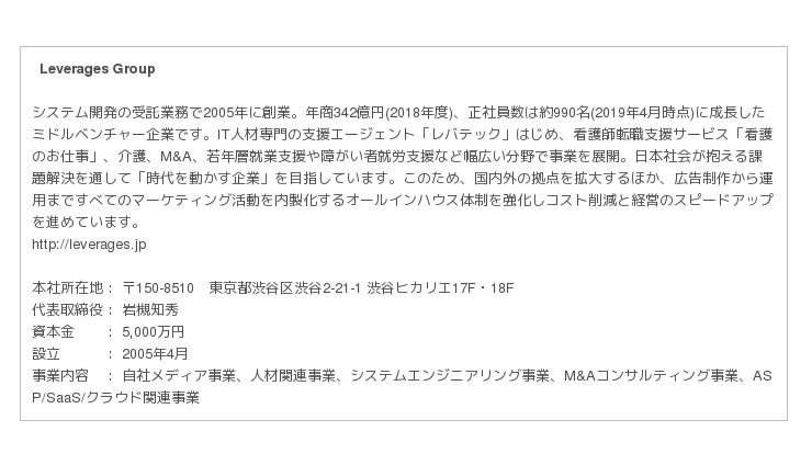 (※1)レバレジーズ株式会社、レバレジーズキャリア株式会社、レバテック株式会社、レバレジーズメディカルケア株式会社、レバレジーズオフィスサポート株式会社、5社の総称