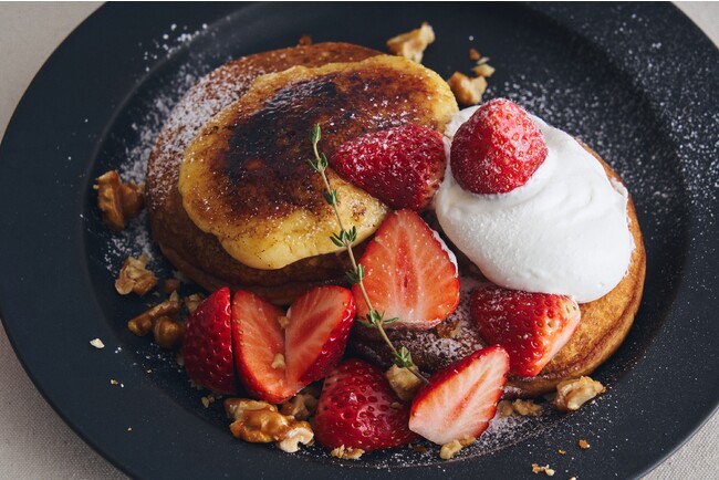 1つで2度おいしい、ブリュレとショートケーキの2種パンケーキや、いちご×クリームチーズのコンビネーションを楽しむパンケーキが登場!