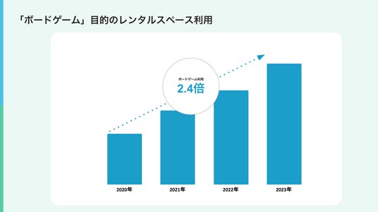 2023年はコロナ禍からの揺り戻しにより、スペースシェア業界においても20名以上の大人数の利用が3年で2.8倍に増加し、友人や同僚とのパーティー需要が回復するなど、リアルの場を通じた人との交流の需要が色濃く表れた年となりました。また、ボードゲーム用途での利用や推し活、合同トレーニングができるトレーニング利用など新たな利用トレンドも生まれています。