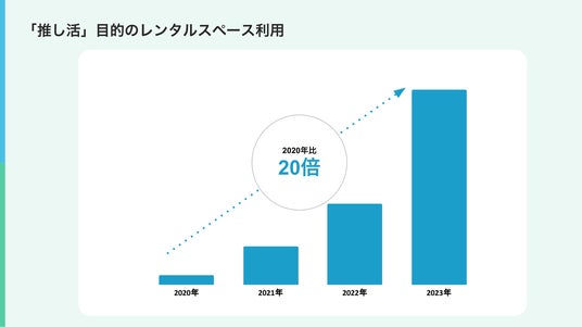 近年、若年層を中心とした「トキ消費」や「エモ消費」への注目の高まりから、有名人やアニメ、ゲーム等のキャラクターなど、応援する対象にお金を使う消費形態「推し活」(※2)をする人が増えています。スペースシェア市場においても、「推し活」を目的とした利用(※3)は2020年比で20倍に増加するなど、直近3年においても多くの方にご利用いただいております。中でもケーキや推しのグッズなどを持ち寄って推しの誕生日を祝う「本人不在の誕生日会」は特に人気で、プライベート空間でできる推し活を多くの方にお楽しみいただいています。
