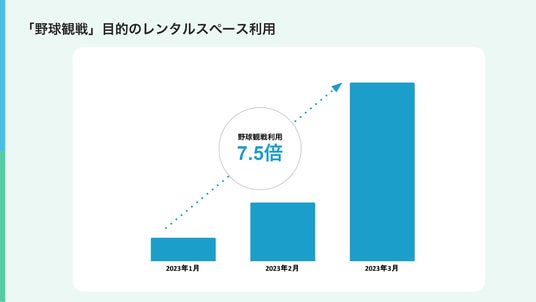 2023年3月に開催された野球日本代表戦の期間中には、スペースマーケットでの野球観戦利用が2か月で7.5倍に増え、多くの方に貸切空間で楽しむ「プライベートビューイング」を楽しんでいただきました。