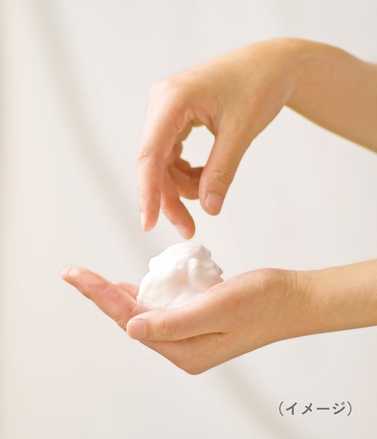 上質な生クリームのようなキメ細かい泡が、お肌への摩擦を抑えながら、すみずみの汚れまで包み込んで落とします。