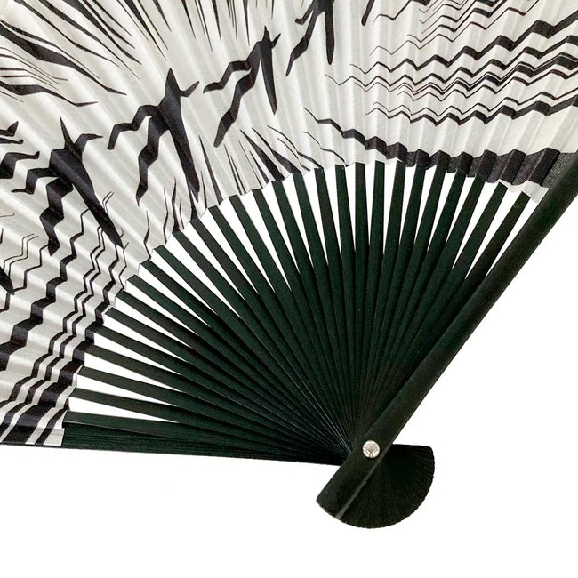 扇子の中骨は「集中線」のデザインになじむブラックで仕上げました。
