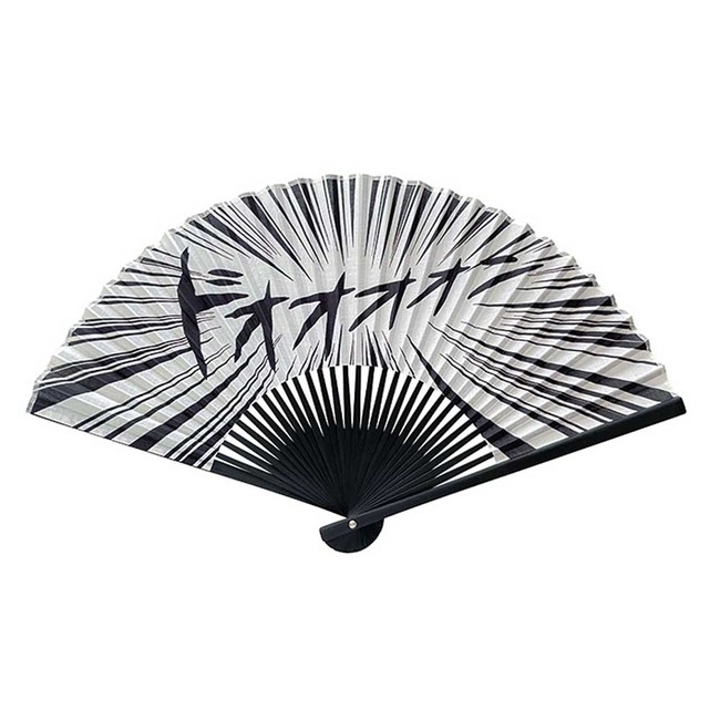 漫画でよく目にする、シーンを盛り上げる「ドオオォォン」「ドンッ!ドンッ!」といった効果音。さらに登場人物を目立たせるための「集中線」を組み合わせて、漫画の1コマを切り取ったようなインパクトのある扇子をデザイン。