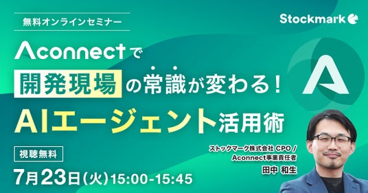 製造業向けAIエージェント『Aconnect』を提供するストックマーク株式会社(以下、「当社」)はオンラインセミナー『Aconnectで開発現場の常識が変わる!AIエージェント活用術』を7月23日(水) に開催致します。