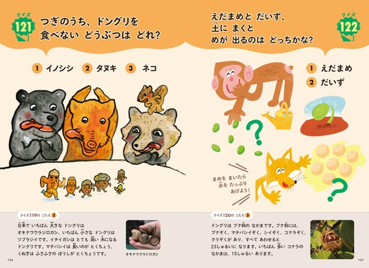 『ぐんぐん考える力を育む かがくクイズブック』は、この大人気シリーズから生まれたクイズブック。もとの書籍の文章やイラスト、写真を用いて編集しています。「かがくのお話」シリーズの読者ならおなじみのキャラクターたちもつぎつぎに登場します。