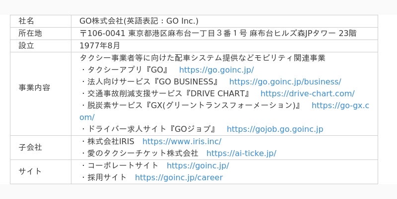 GO株式会社は、「移動で人を幸せに。」をミッションに掲げ、モビリティ領域を軸とする多様な事業・サービスを展開しています。協働パートナーの皆さまとの共創力と、テクノロジーを最大限に活用する開発体制のもと、時代に合わせた「移動」のアップデートを通じて、日本の社会課題の解決を目指します。