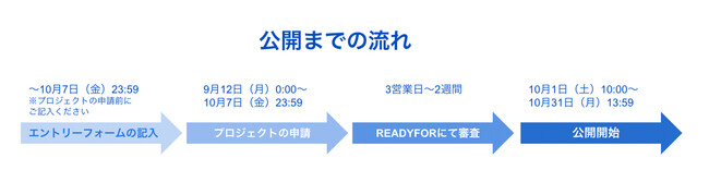 ※上記ページ内には審査に関して「申請から3営業日以内にREADYFOR継続寄付サポートチームが確認のうえ、連絡させていただきます。」と記載がありますが、キャンペーン期間中は通常よりも審査に時間を要することが予想されます。ご了承ください。