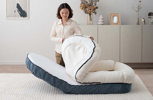 さらに、クッションを取り外すとより包まれるような居心地を体験できる所や、スタイルに合わせて背もたれクッションや枕として活用できるところもポイントです。