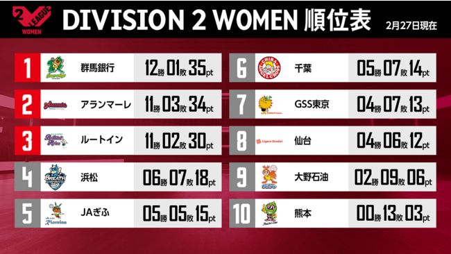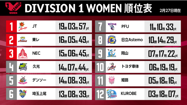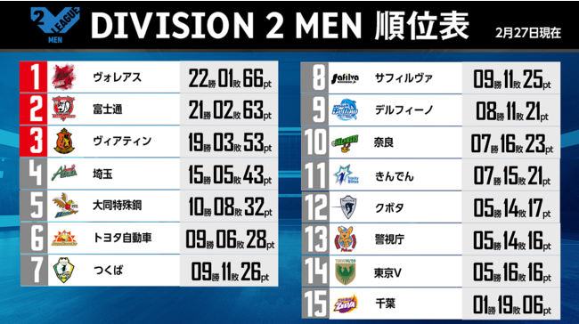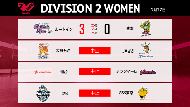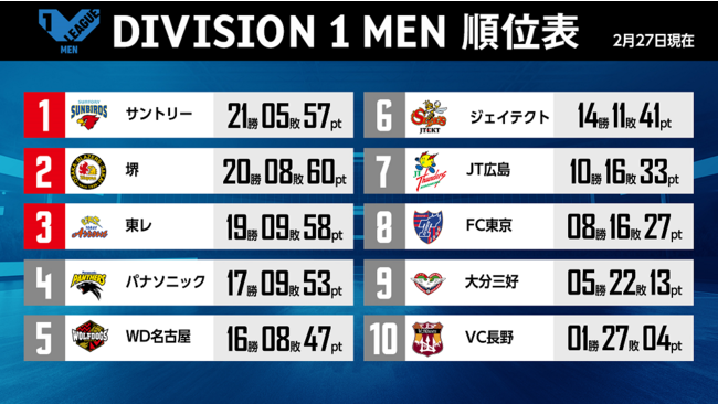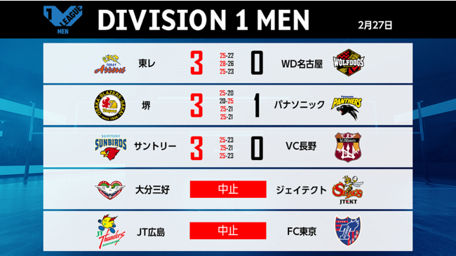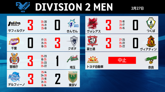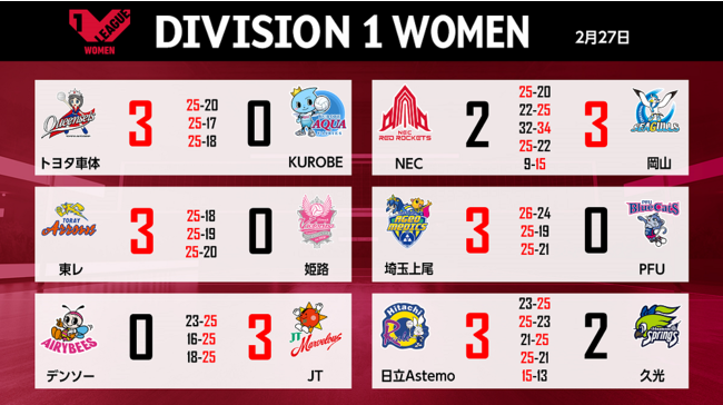 バレーボール国内最高峰リーグ V.LEAGUE【2月27日の試合結果】