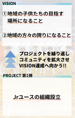 このビジョン達成に向けたプロジェクトの第1弾として、「下部組織(Jrユース)」を設立することが今回のトークン発行の目的となります。
