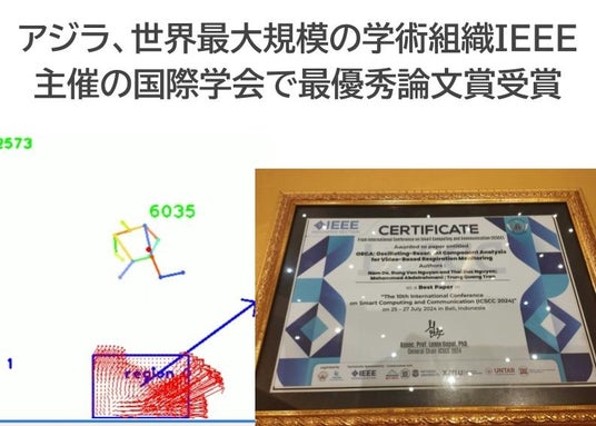 株式会社アジラ(本社:東京都町田市 代表取締役CEO 兼 COO 尾上剛 以下、アジラ)は、独自研究開発を行う『行動認識AI』を活用する実証実験を重度障がい者施設で行った結果を論文発表したところ、世界最大規模の学術組織IEEE主催の国際学会"The 10th International Conference on Smart Computing and Communication (ICSCC 2024)"に採択され、さらに最優秀論文賞を受賞したことをご報告させていただきます。