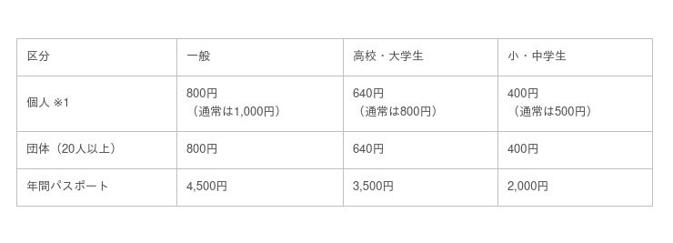 ※1 個人料金は、2021年4月1日から2023年3月31日まで団体料金相当額(2割引)となります(2022年3月4日愛知県発表済み)。