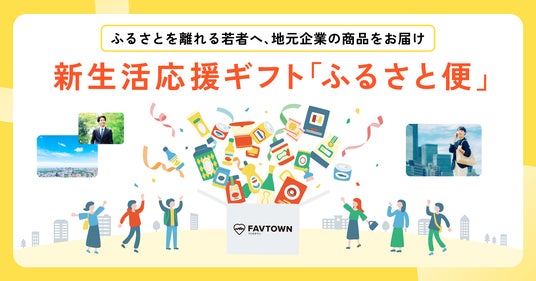 「ふるさと便」は、FAVTOWNが自治体および地元企業などと連携し、特産品や日用品などを詰め合わせた新生活応援ギフトを無料で届ける施策です。進学や就職を機に地元を離れた18~29歳の若者へ、
