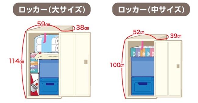 ※ 戸建の方で、敷地内に商品を保管する鍵付きロッカー(無料)を設置していただくと、月会費がお得になります。鍵付きロッカーの大きさは以下の2種類からお選びいただけます。