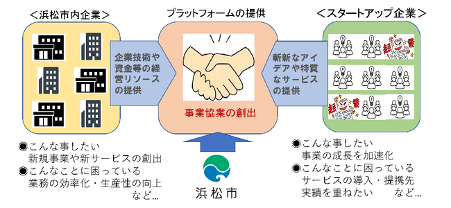 浜松市では、市内事業者の技術・ノウハウと全国のスタートアップの革新的なアイデアの融合によるイノベーションのモデル事例の創出を目的に、2020年度から本事業を実施しております。