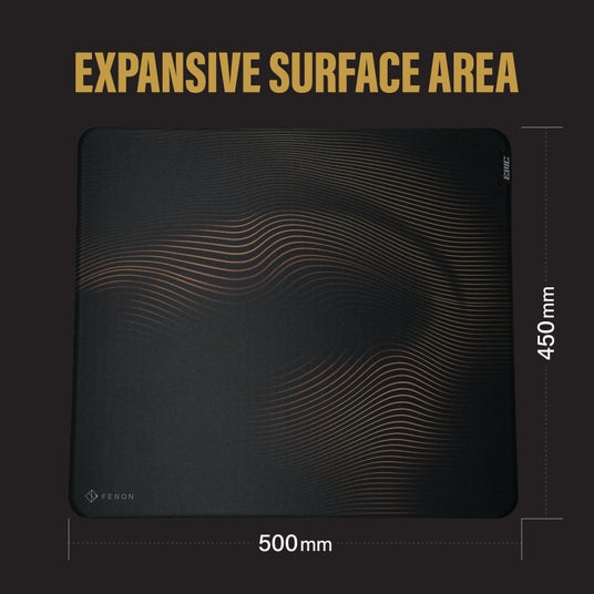 プロの意見を取り入れた500mm×450mmの大型設計で、ローセンシプレイヤーの激しいマウス操作にも対応します。