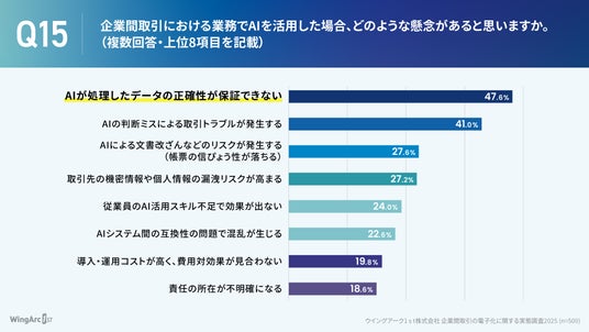 15.企業間取引におけるAI活用の懸念点、「AIが処理したデータの正確性が保証できない」が47.6%で最多