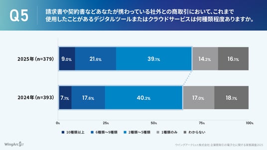 5.社外取引において、69.7%が「2種類以上」のデジタルツールを使用、2024年から4.8ポイントアップ