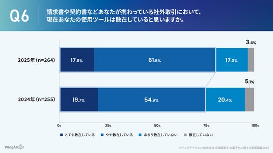 6.79.6%が、請求書や契約書の社外取引において「使用ツールの散在」を実感、前年比5.0ポイント増