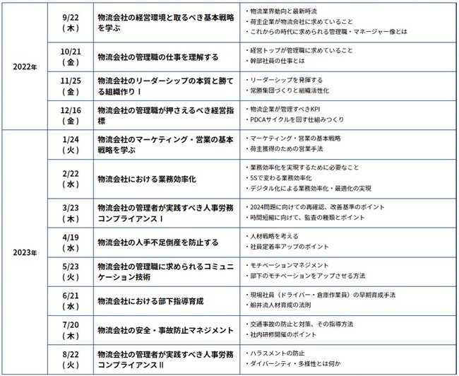 ロジスティクス・物流コンサルティングサービスを提供する船井総研ロジ株式会社(東京本社:東京都千代田区、代表:菅重宏、以下「船井総研ロジ」)は、会社の将来を担う管理職人材の育成を早期に実現したい運送・物流企業が対象の「物流会社のための管理職・マネージャー育成アカデミー」の第2期(2022年9月開始)の受講申し込みの受付を開始しました。
