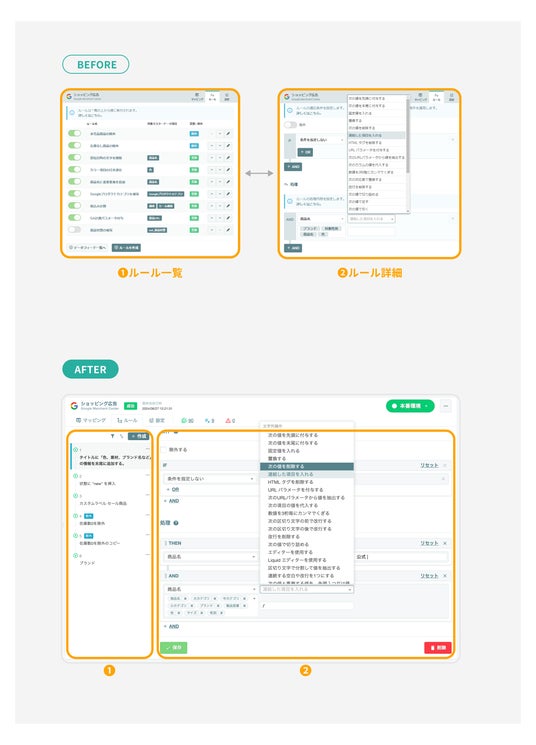 特に、求人・転職サイトのデータフィードでは、100 件ほどのルールが設定されることもあり、そういった多くのルールを駆使しているユーザーにとって重宝する機能となっています。