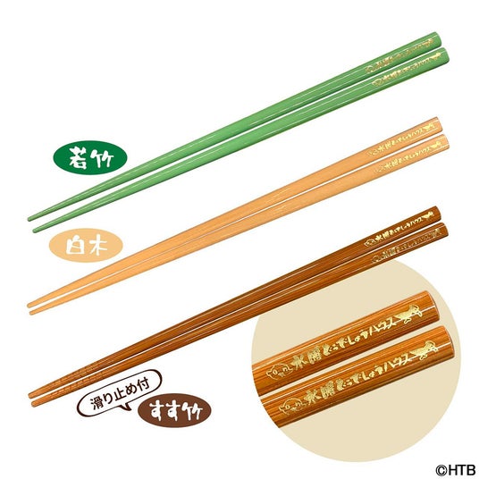 カラーはハウスの外観をイメージした「若竹」「白木」「すす竹」の3種類。「すす竹」には箸先に便利な滑り止めも付いています。ご家族それぞれでお気に入りの色を選んで使い分けるのもおすすめ!丼、椀と合わせてぜひどうぞ!