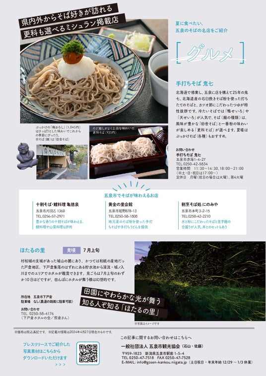 新潟県五泉市の旬な情報をお届けする、プレスリリース「GO!GO!ごせんNEWS」6月・7月号を発行いたしました。年6回の発行を予定しております。