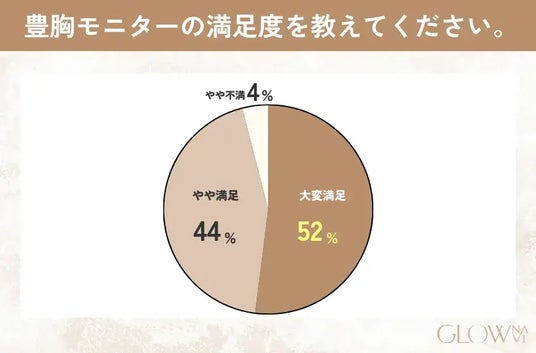 - 豊胸モニターの満足度は96%が「大変満足」または「やや満足」