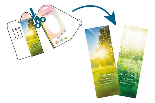 つやっとした光沢感と丸みのある形状のパッケージで、裏面は切り取って栞としてもお使いいただけます。