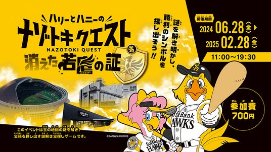 E・ZOとみずほPayPayドームを舞台とした謎解きイベント「ハリーとハニーのナゾトキクエスト 消えた若鷹の証」が特別価格500円(通常700円)消えた若鷹の証をめぐる謎解きにチャレンジしよう!